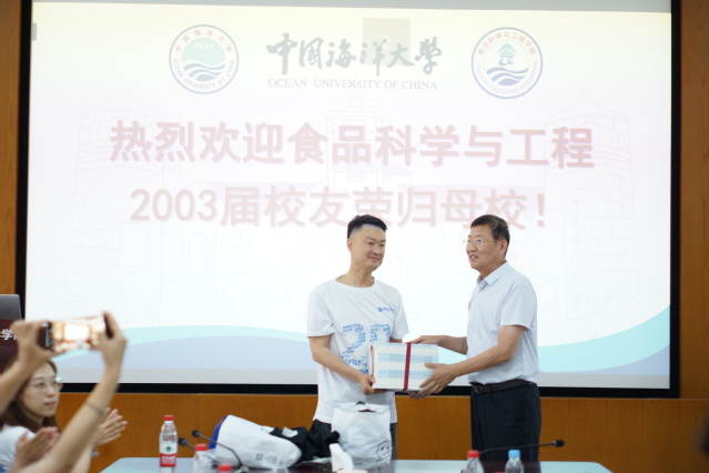 2023年6月17日,中国海洋大学食品科学与工程99级毕业20周年返校座谈会在西海岸食工楼106会议室举行,海燕论坛 书记辛华龙、院长薛长湖、副院长徐宋娟、林洪教授、2003届食工班主任牟海津教授及退休教师管斌老师参加了仪式。来自全国各地的18名校友参加了仪式,其他30余名校友通过“腾讯会议”平台观看了直播。