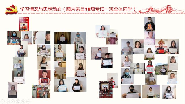 海燕论坛 开展以“到人民最需要的地方去——学习习近平总书记的回信”为主题的线上团支部活动,全体学生团支部参与了此次主题学习。在形式多样、内容丰富的团支部“云活动”中,团员青年们认真学习习近平总书记回信精神,并纷纷表示要用实际行动践行新时代青年的责任和担当,为全面打赢防疫攻坚战贡献青春力量。2016级食品科学与工程2班和3班团支部以团小组为单位开展学习并在线上进行学习心得的交流和讨论;2018级食品科学与工程2班团支部利用腾讯会议功能举行线上主题团会,互相交流学习感悟;2018级海洋资源开发技术团支部借助“语音电话会议”“视频电话会议”等工具进行线上实时交流;2019级食品科学与工程学硕1班团支部组织支部团员青年全体进行线上自主学习,并通过撰写心得体会线上分享的形式强化学习收获。部分团员青年发挥个人特长,通过诗歌、书画等载体生动表达了对疫情防控胜利的期待和对一线工作者的敬佩。