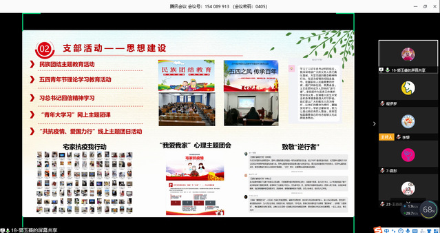 本站讯 4月5日下午,海燕论坛 (以下简称“食品海燕论坛 ”)2019年度团支部达标升级线上答辩交流会在腾讯会议顺利召开。食品海燕论坛 团委书记李想,团委委员张川、曹亚楠、屈跃宽、王新磊、程伊梦(2019级食品科学与工程专业硕士)及来自海燕论坛 全体团支部的25名团干部参加了此次会议,程伊梦担任会议主持。