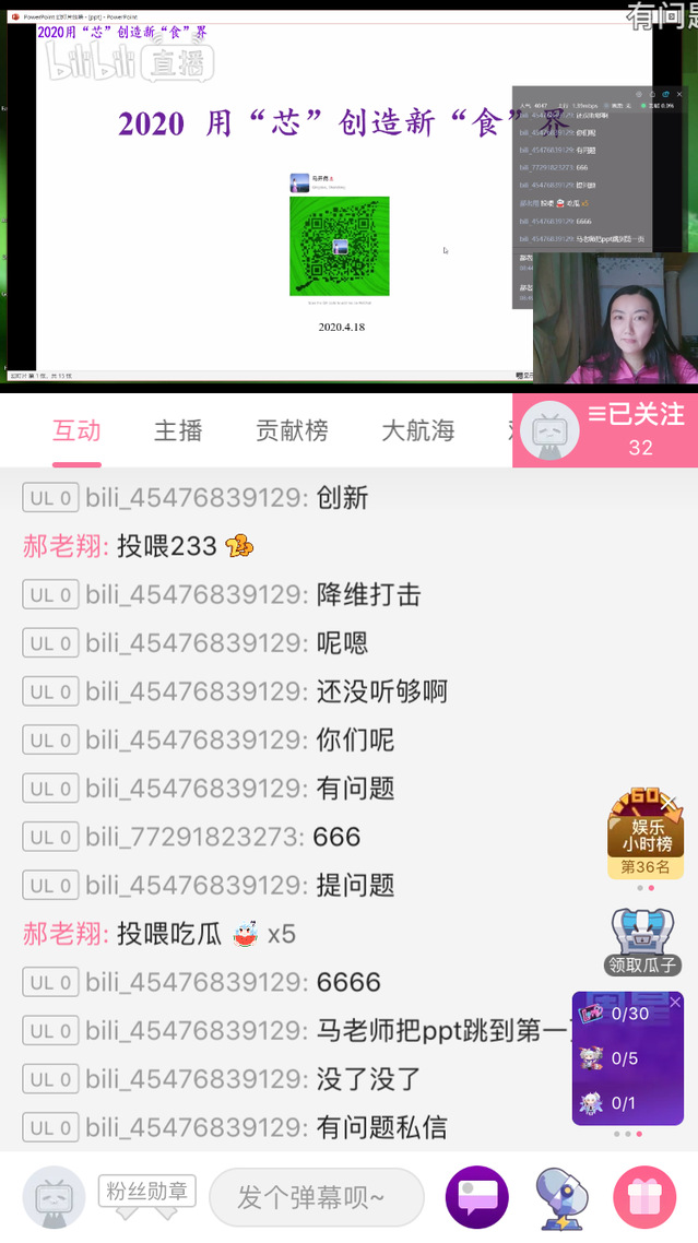 本站讯4月18日上午,海燕论坛 党委副书记程振明和专业教师马磊联合主讲的《用‘芯’创造新‘食’界》主题讲座及在线讨论通过BiliBili直播平台和腾讯会议等方式顺利开展。