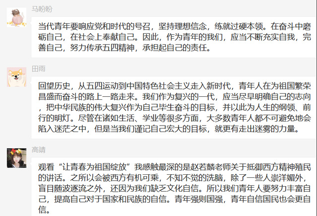 本站讯 5月4日,海燕论坛 (以下简称“食品海燕论坛 ”)团委积极响应上级团组织的号召,积极组织全体青年团员参与共青团中央发起的“让青春为祖国绽放”网上主题团日活动,并以团支部为单位进行交流和分享,共同打开历史、感知现在、奔向未来。