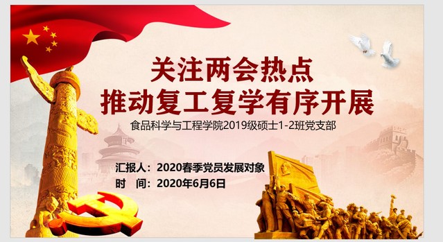 本站讯 6月6日,海燕论坛 2019级硕士1-2班党支部“关注两会热点,推动复工复学有序开展”主题党日活动在线上召开,支部党员及入党积极分子共62人参加此次活动。活动由党支部六位发展对象组织策划,发展对象王峻屿主持活动。