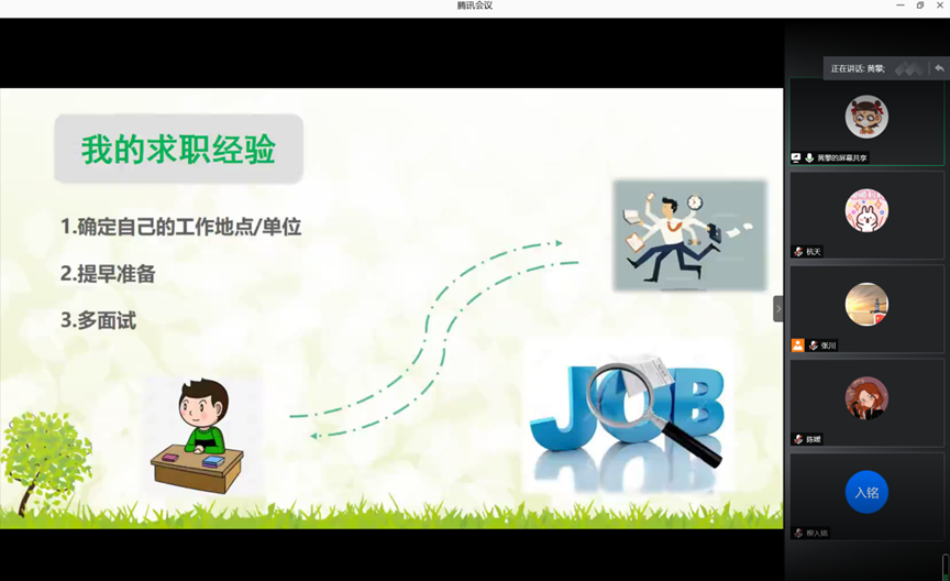 会议最后,张川老师对于本次会议进行了总结,并且分享了他关于就业的一点儿体会,与同学们交流共勉。