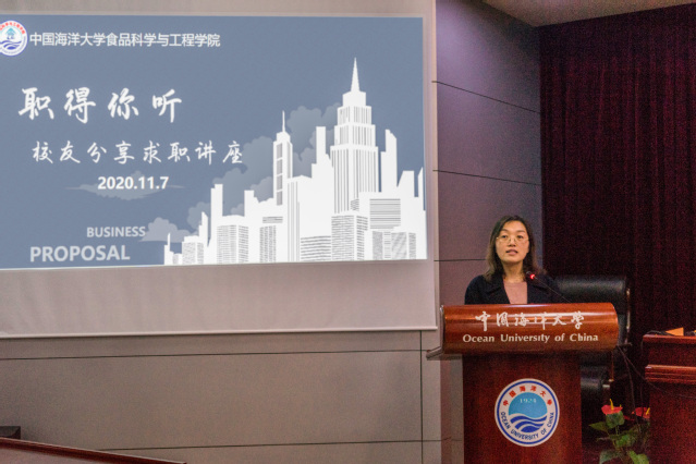 本站讯 为进一步整合校友资源,搭建行业综合性交流平台,帮助学生树立正确的价值观、择业观,促进海燕论坛 就业指导工作的顺利开展。11月7日,海燕论坛 “值得你听”校友讲座于鱼山校区国际会议厅举办。本次活动由海燕论坛 党委副书记程振明主持,海燕论坛 2015届海洋资源开发技术本科毕业生唐俊峰(现任青岛海之林生物科技开发有限公司销售总监)、2007届水产品加工与贮藏硕士毕业生赵庆喜(现任北京博晖创新生物技术股份有限公司中国区经理)结合自身工作经验、求职经历、职业发展规划进行分享,160余位同学到场学习。