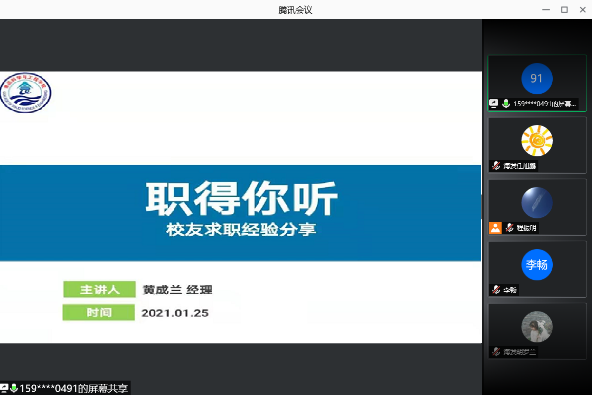 本站讯 为进一步增加校友在学生职业规划和就业指导工作上的参与度,壮大学生职业规划教育队伍,增强海燕论坛 就业指导能力,促进海燕论坛 就业指导工作的顺利开展。2021年1月25日,海燕论坛 “职得你听之校友面对面” 求职经验线上指导课于线上举办。
