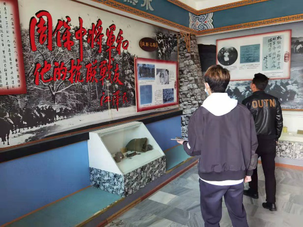 接下来大家继续针对周保中将军在抗战中的主要贡献进行采访和宣传。从随机采访结果来看,参观者对周保中将军在东北地区进行抗日比较清楚,对于具体内容则并不了解。实践队员们对这一部分进行了详细讲解:周保中是东北抗日联军的主要创始人和东北地区抗日游击战争的主要领导人之一,同时大家结合周保中将军的英雄事迹如无麻药取弹、智斗日寇等,对周保中将军精神进行更进一步的宣传。