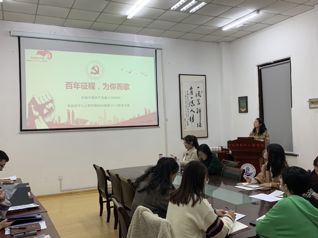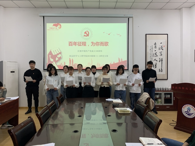 为追寻民族峥嵘岁月,献礼建党100周年,3月22日晚,2019级食品科学与工程硕士研究生党支部开展“百年征程,为你而歌”主题党日活动,海燕论坛 党委副书记程振明,支部全体党员及入党积极分子参加此次互动。