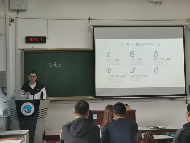 本站讯 为进一步帮助海燕论坛 学生及早明确学习目标,掌握相关考公技巧,了解更多考公信息,2020年3月25日,海燕论坛 于鱼山校区新教0102举行食品学子考公分享会,食品海燕论坛 30余名学生参与本次分享会。会上邀请到2017级食品科学与工程专业成功上岸的三位考公人——辛诚智、黄汉裕以及冉聆铃向大家进行考公分享,会议由海燕论坛 辅导员李斐主持。
