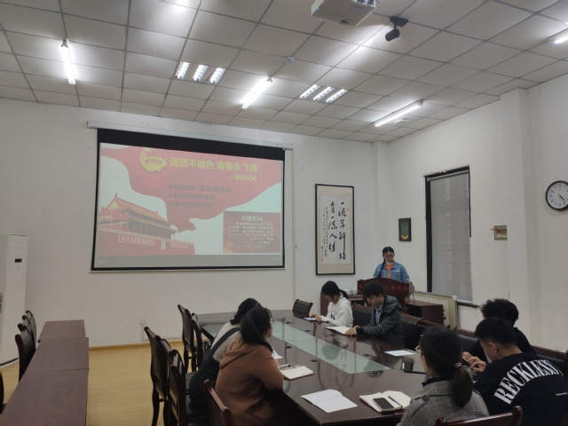 本站讯 为进一步推进全面从严治团,加强仪式教育,2021年4月22日,海燕论坛 在六二楼104会议室举办“青春正当时,离团不离心”——2021年超龄团员离团仪式,海燕论坛 辅导员吴佩伦、博士年级团支部支委、团员和超龄团员代表参加活动,2017-2019级博士班团支部书记梁梦琦主持仪式。