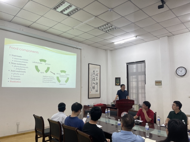 王明福教授从膳食多酚的营养健康功能及其构效关系、美拉德反应对食品品质与营养的影响机制、天然活性成分的应用与开发等方面做了介绍,报告紧密联系了食品营养健康领域等相关热门问题,引起了与会人员的积极讨论。