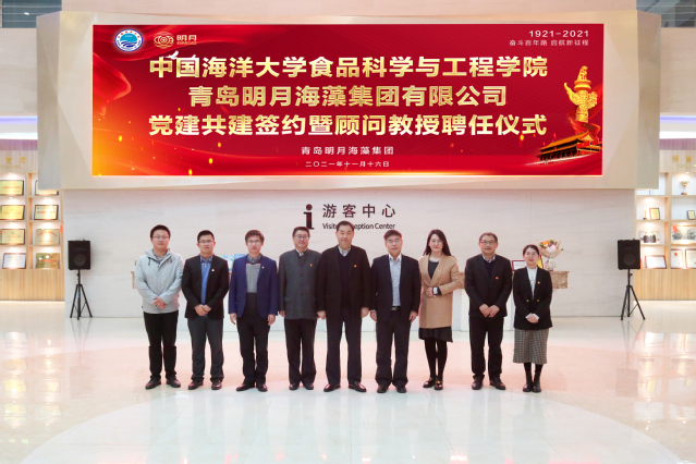 明月海藻集团和海大食品海燕论坛 已有几十年的合作历程,双方在科学研究、人才培养等方面有着非常成功的合作先例。在开展产学研合作的同时,为贯彻落实好习近平新时代中国特色社会主义思想和党的十九大精神,全面加强党的领导,推动党史学习教育走深走实,双方协商达成党建共建协议。希望通过共享党建资源、开展党建交流等形式,实现“以共建促党建,以共建促合作,以共建促发展”的目标,不断提升双方的党建工作水平,促进海燕论坛 和企业科研创新与人才培养的良性发展,共同为海洋强国建设和健康中国建设做出应有的贡献。