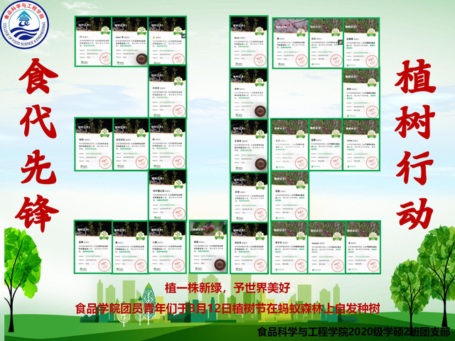 2019级食品科学与工程博士高坤鹏:虽因疫情严峻形势,今年植树节活动线上开展,但在食品海燕论坛 师生的共同努力下,我们相聚云端共同为绿色未来而努力。本次活动让“守护自然,与万物共呼吸”的理念更加深入人心。守护绿色环境,共建美好校园。我们一直走在绿色学校创建的路上,为脚下的土地添一抹绿,为校园的环保尽一份力。