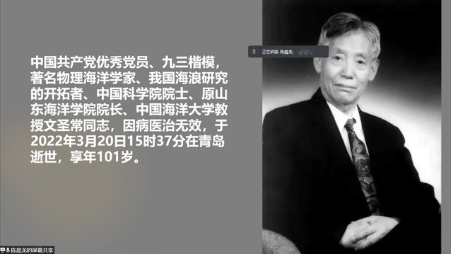 团支书邓交全先带领大家先默哀1分钟,以表达对文院士的沉重悼念和深切缅怀。陈晨龙带领支部团员认识了文圣常院士的生平事迹,共同学习感悟文圣常院士爱国、求实的科学家精神。