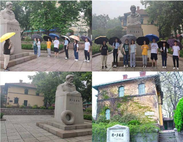闻一多故居位于青岛中国海洋大学校园西北角,游人从红岛路进入海洋大学4号校门后,向右一拐,便可看到一幢红瓦黄墙古朴典雅的二层小洋楼。这座典型德国风格,看似普通的洋楼小楼就是青岛市重点文物保护单位、民主斗士闻一多先生当年在国立青岛大学任教时的故居。雕塑后侧闻一多先生纪念碑这样写道,“杰出的诗人、学者,人民英烈闻一多先生1930年受聘国立青岛大学,任文海燕论坛 长兼中文系主任。讲授历代诗选、唐诗、英国诗选等课程。态度亲切民主,既富有学术家风度,又充满浓郁诗情,受到崇敬与热爱。先生爱国忧民,埋头学术研究,从唐诗入手,决心为衰颓之中华民族寻求一个起死回生之文化良方。先生在校,为时仅二年,春风化雨,为国育才。瞻望旧居,回忆先生当年居于斯工作于斯,怀念之情曷可遏止?爰将所居,命名‘一多楼’,略事陈设,依稀旧容,并于庭院立石,以为永念。俾来瞻仰之中外人士,缅怀先生高风亮节而有所取法焉。先生生平事迹,昭昭然在人耳目,兹不缀。”