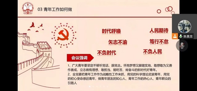 11月23日,2019级食品科学与工程1班团支部、2021级食品科学与工程2班团支部、2022级博士班团支部依托线上会议的形式开展了主题团日活动。会上,同学们积极参与讨论,畅谈伟大成就。在学习交流过程中,同学们认为党的二十大报告主题鲜明、内容丰富、亮点纷呈、催人奋进,作为新时代青年,应该将个人成长与实现中华民族伟大复兴的历史使命紧紧连在一起,锤炼过硬本领,努力成长为堪当民族复兴重任的时代新人。