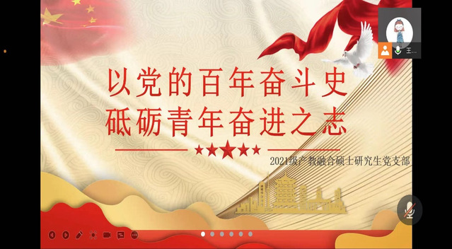 本站讯 2022年4月1日,2021级产教融合硕士研究生党支部书记王惠莹同志以《以党的百年奋斗史 砥砺青年奋进之志》为题讲授专题党课,支部全体同志参加学习。