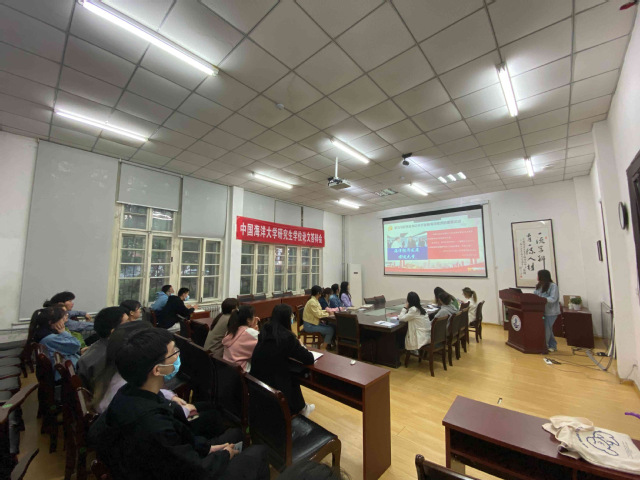 本站讯 2022年5月10日,2020级生物与医药硕士研究生党支部书记石宜欣讲授题为《习近平总书记海洋强国建设系列重要论述》专题党课。支部全体同志共同学习习近平总书记关于发展海洋经济的重要论述。