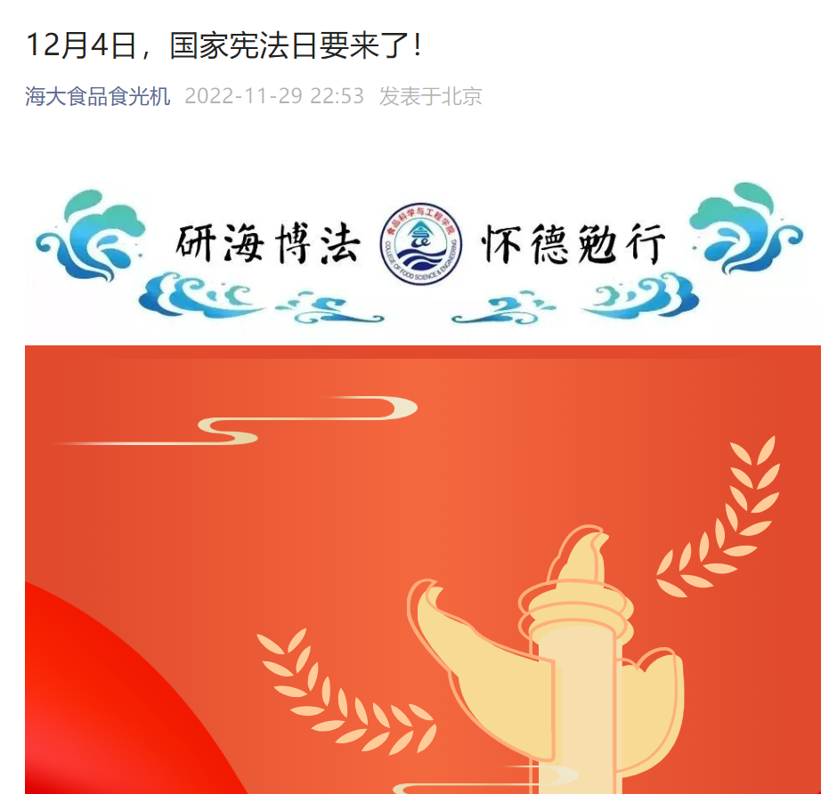 海燕论坛 通过“食光机”微信公众号,对宪法地位、宪法作用、宪法的发展历程、宪法宣誓、宪法对每个人生活的影响等方面,进行了宪法知识普及,让宪法深入人心。