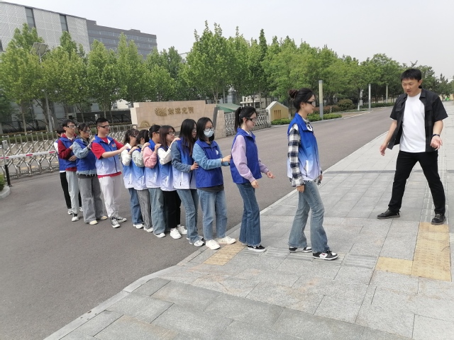 活动伊始,青岛市盲校团委书记史春成为志愿者一行介绍本次体验活动的具体内容,在活动中志愿者将佩戴特制眼镜体验盲人的现实生活。他希望志愿者们通过三小时的换位体验切身感受盲人生活的实际,并在未来的工作和生活中珍惜光明关爱特殊群体