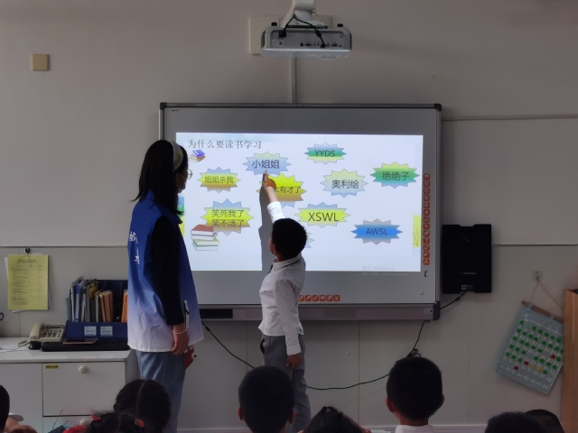 课堂伊始,主讲人刘娅妮和小朋友们共同探讨了“为什么有时会不想读书学习”“为什么要读书学习”以及“怎样读书学习”等系列问题,并邀请小朋友们分享自己的阅读故事。接着,主讲人指出了粗俗泛滥、过度流行的网络用语对于小朋友们成长的弊端,带领小朋友们学习具有内涵和美感的中国传统成语,小朋友们齐声朗读,课堂气氛活跃。主讲人借机邀请多名小朋友谈一谈自己要如何读书学习等课堂感悟,引导孩子们积极思考,勇于表达