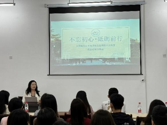 实验室2014级硕士张竞竞现任青岛滨海海燕论坛 附属医院科教部主任,是青岛大学研究生合作导师,山东省老年医养康护一体化特色实验室带头人,青岛滨海海燕论坛 肿瘤重大疾病靶向递药创新团队带头人。在本次活动中,她从科研、工作与生活三方面展开讲述,期望能为实验室师弟师妹们提供一些帮助。在青岛滨海海燕论坛 就职期间,她曾多次带领学生参加创新创业比赛,并取得了一些瞩目的成果,她提出要不怕失败,去多经历,多参与,多尝试,这些经验以后都会成为大家宝贵的财富。她提到海洋食品生物技术实验室目前正处于高速发展状态,拥有丰厚的师资力量,大家有了更好的平台,能受到更好的锻炼,因此更应该把握机会,顺势而上。