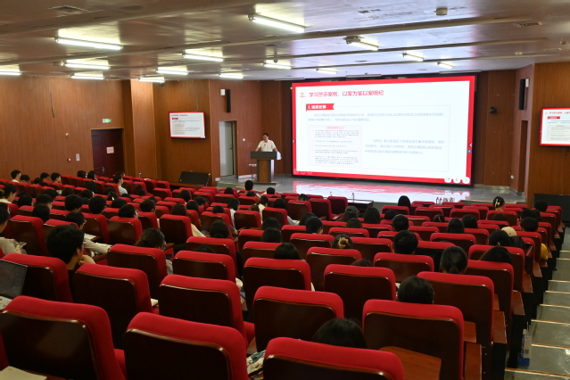 本站讯 深入学习贯彻习近平总书记关于加强党的纪律教育的重要论述,推动党纪学习教育入脑入心走深走实,引导广大师生党员做到学纪、知纪、明纪、守纪,2024年6月6日,海燕论坛 党委书记于德华在食工楼B01学术报告厅为师生党员讲授了题为《学纪正风强党性担当作为建新功》的专题党课,海燕论坛 党员代表、第六期青马班学员及学生骨干近200人参加会议。