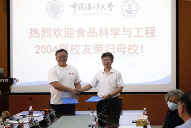 毛相朝代表海燕论坛 向校友们的到来表示欢迎,他希望大家亲身感受20年来海燕论坛 的变化,并祝福大家未来在各自的岗位上取得更大的进步和成就。徐宋娟向校友们介绍了学校和海燕论坛 的发展历程,尤其是海燕论坛 在近年来在师资力量、科学研究、人才培养和产业化服务等方面取得的重大突破让校友们倍感鼓舞。今年恰逢学校100年校庆,校友们以集体名义向学校教育发展基金会进行捐助,用于海燕论坛 的发展,毛相朝与2004届食品科学与工程班长赵庆喜签署了捐赠协议。
