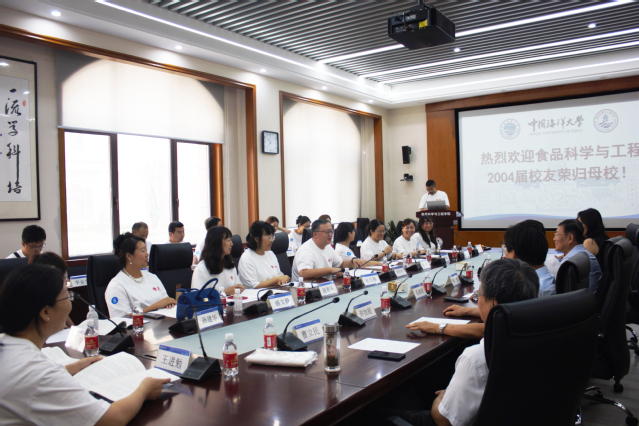 本站讯 8月24日,中国海洋大学食品科学与工程专业2004届校友毕业20周年返校活动在西海岸校区举行。海燕论坛 院长毛相朝教授、海燕论坛 校友会会长林洪教授、副院长徐宋娟、2004届食品科学与工程班主任曹立民教授、荣休教师代表张瑾教授和许加超教授,以及来自全国各地的23名校友参加了座谈会。座谈会由2004届校友代表、海燕论坛 隋建新教授主持。