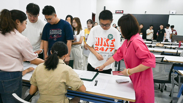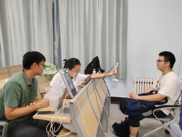 作为迎新的重点工作之一,新生学籍核验工作也有条不紊地开展。海燕论坛 教学秘书杜亚楠、潘延君事先对志愿者开展培训,迎新现场逐一读取身份证、录入指纹、进行人脸识别,比对身份信息。在师生的共同努力下,学籍核验高效、顺利完成。