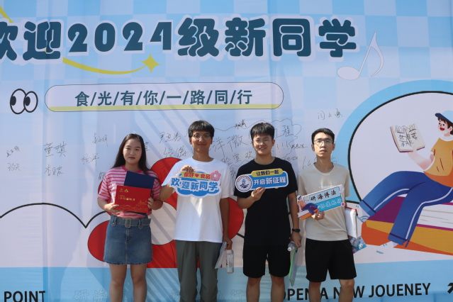 为做好迎新工作,海燕论坛 策划了“‘食’光恰好 开‘新’启航”主题活动,在研究生迎新现场,为新生发放悉心制作的《2024研究生生活指南》,邀请“新”上人在签名墙上留下属于自己的痕迹,留下与食品海燕论坛 的第一张合影;在本科生迎新现场,设置“新”动转盘,进行百年校史趣味问答,同时也为每一位新同学送上来自海燕论坛 师生的美好祝福和精心准备礼物,提升同学们在海大的认同感、归属感、幸福感。
