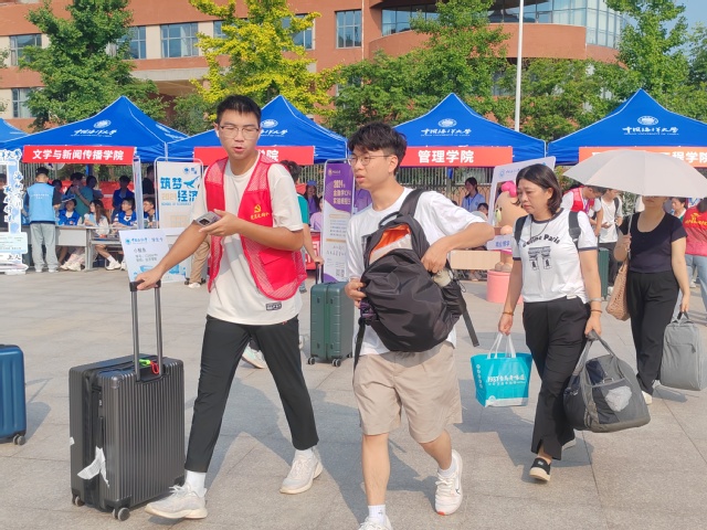 高温和降雨,挡不住校园里的车水马龙,那是家长们对孩子的关切与不舍;挡不住志愿者的汗如雨下,那是学长学姐们对新生的热忱与帮助;挡不住老师们忙碌的身影,那是老师对学生的期许与祝福。少年在校园间俯仰环视,眼里带着对未来的新奇与憧憬,来自五湖四海的他们齐聚一堂,即将开启新的旅程。