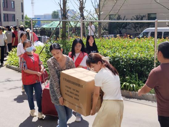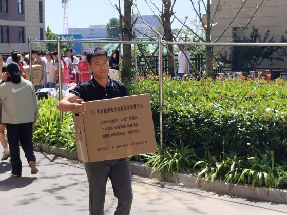 搬迁现场,全体师生分工协作、互帮互助。志愿者们指导同学们做好宿舍钥匙领取和入住登记,班主任们为每个宿舍发放清洁用具,在烈日骄阳下,全体师生不分你我、上下奔忙,已最快的速度做好行李卸载、分类和搬运,展现出了食品人精诚团结、拼搏进取的精神风貌。