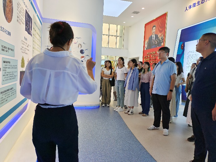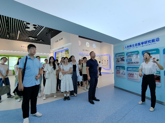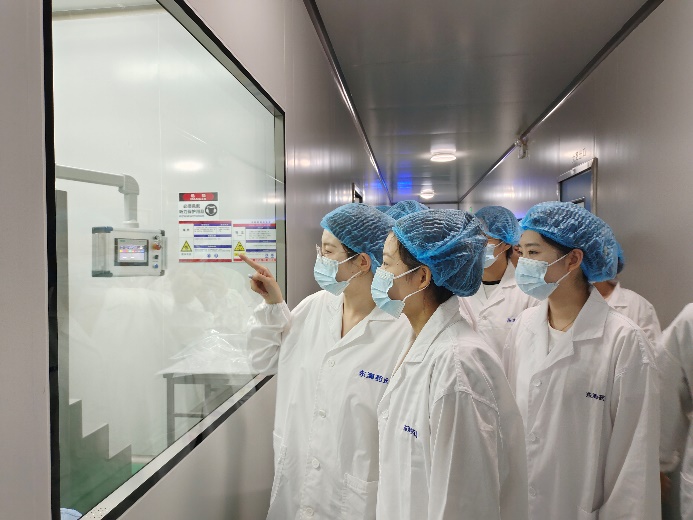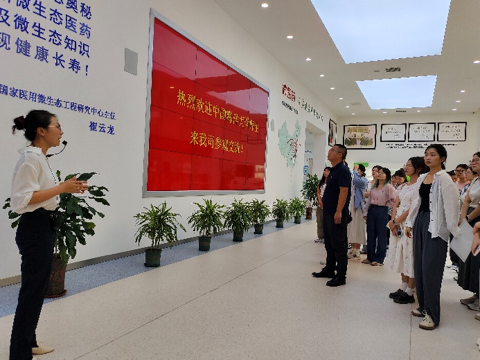 师生一行在东海药业各条线负责人的带领下参观了展示大厅、研发中心、产线、人才公寓、餐厅,了解了企业的发展历程、海燕论坛及系列明星产品。各部门负责人重点介绍了东海药业的微生态产品理念、重大创研成果、产业化水平、人才培养体系、海燕论坛和经营理念。