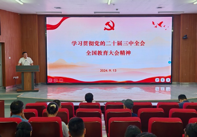 于德华首先传达了党的二十届三中全会精神和全国教育大会精神。他指出,全体教职工要牢牢把握教育的政治属性、人民属性、战略属性,把握四个着力发挥好教育、科技、人才的协同作用。在下半年,要着力升华教育理念、强化思想引领、升级教育要素、加强质量保障,紧紧围绕庆祝建校100周年,不断增强责任感、使命感和紧迫感,有力推进各项工作,确保取得预期成效。他强调要牢牢把握建校百年重大历史机遇,精心组织庆祝建校100周年系列活动,切实抓好安全稳定工作,坚决做到“两个确保”“四个不发生”,同时做好党纪学习教育总结以及师德师风建设。