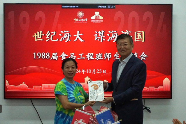 林洪表示,作为1988届校友们的班主任,历经数十载能再度与同学们齐聚一堂,既激动又感动。他再次欢迎同学们回到海大、回到食品海燕论坛 ,历经岁月,更显情深义重。师生们共同回忆了求学期间的趣闻和故事,分享了同学们的发展情况,校友代表向林洪教授送上了鲜花以表感激之情。