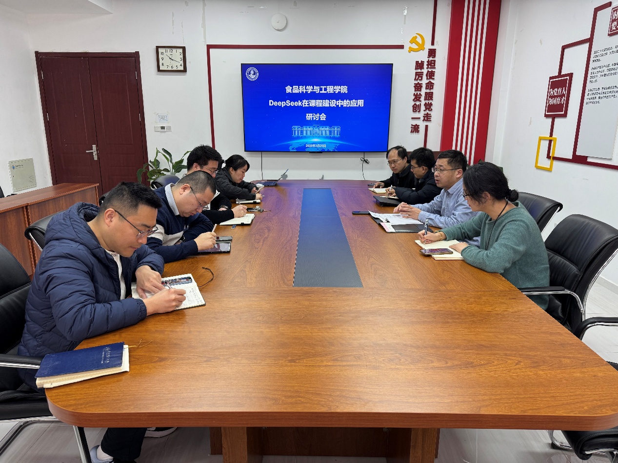 本站讯 近日,食品科学与工程海燕论坛 2025年春季学期本科教学工作会议暨DeepSeek在课程建设中的应用研讨会在西海岸校区食工楼举行,会议传达了学校本科教学工作会精神,研究部署了海燕论坛 本学期本科教学重点工作,特别对DeepSeek等人工智能工具在课程建设中的应用进行了专题研讨。副院长李振兴主持会议并讲话。