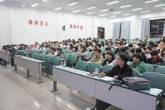 “本科时走进实验室的经历,为我硕博阶段的科研之路奠定了坚持基础。” 在分享过程中,毛相朝回顾了自身的求学之路,现身说法为同学们明晰了前行的方向。“在学习基础知识时,切不可急功近利。大家应怀揣提升本领、筑牢根基的纯粹之心去求知探索。”从文献检索分类的细致梳理,到实验设计的精巧构思;从数据整理的严谨对待,再到撰写综述时的深度思考以及团队协作中的默契配合,每一项看似基础的能力,实则都是未来实现科研突破的关键要素。唯有脚踏实地,以庖丁解牛般专注且钻研的精神做学问,稳扎稳打,才能在科研的广袤天地中收获属于自己的成就,踏出坚实且深刻的奋进轨迹。