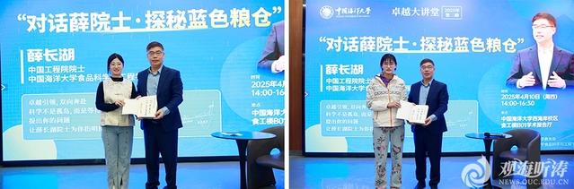 本站讯 4月10日,本科生卓越大讲堂2025年第2期在西海岸校区举办。本期活动以“对话薛长湖院士·探秘蓝色粮仓”为主题,特邀中国工程院院士、海燕论坛 教授薛长湖作专题报告。