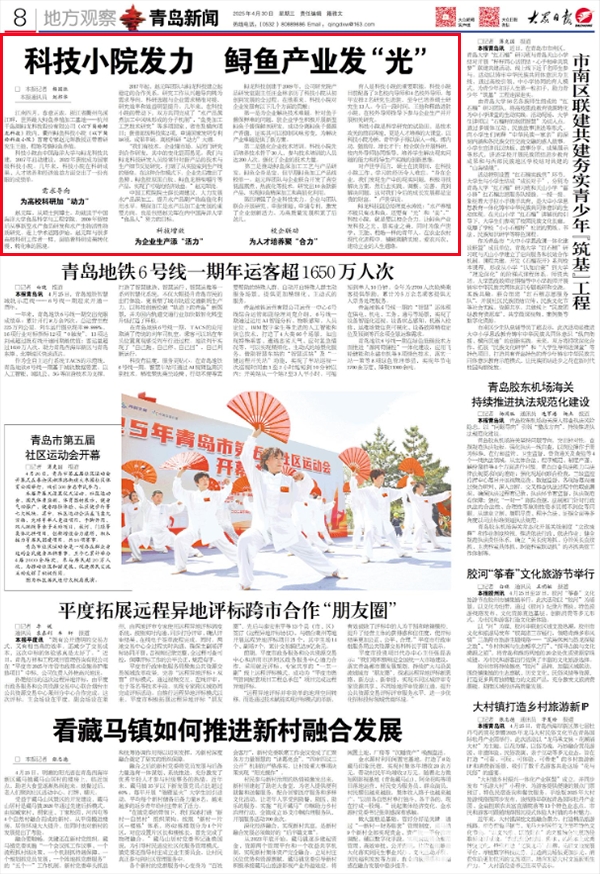 新闻链接:【大众日报】科技小院发力 鲟鱼产业发 “光”(《大众日报》2025年4月30日 8版)